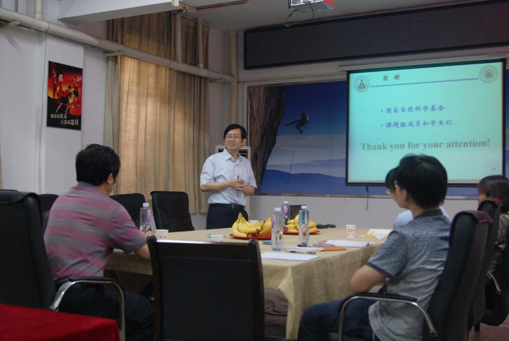 魏先文教授作了题为 “磁性金属及碳基微纳结构材料的控制合成与性能”学术报告。魏教授先从研究的选题、热点领域的结合来说明怎么样做科研。并介绍了近几年课题组在磁性材料方面所做的工作,重点介绍了M@C型磁性微纳米材料的特点、制备方法,以及在磁性、催化等方面的应用。魏教授的报告思路清晰,分析严谨、富有创新性的观点给师生们留下了深刻印象。随后,魏教授根据亲身经历来鼓励年青教师和同学们要抓住机遇,珍惜时间,尽快成长。