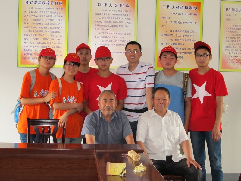 7月7日,化学工程学院、机械工程学院、材料科学与工程学院志愿者来到凤阳县小岗村敬老院,了解那里老人的生活情况,并为他们送去祝福与温暖。