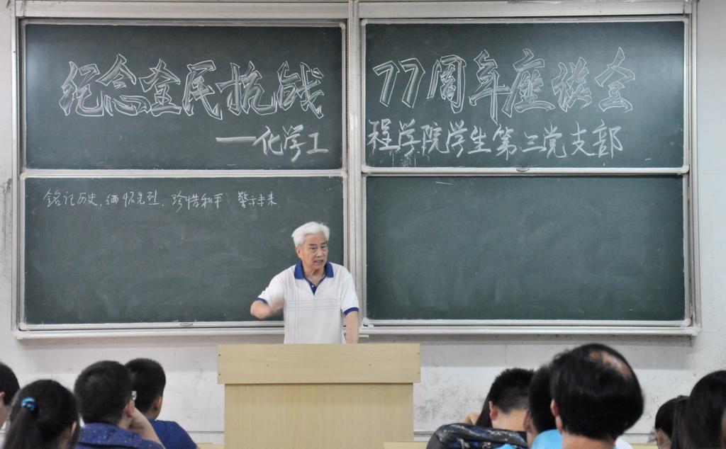 在全民族抗战爆发七十七周年之际,7月7日晚,化学工程学院党委学生第三党支部召开党员大会,师生党员在学院关工委副主任、老党员汪大立的带领下回忆抗战历史、缅怀革命先烈、反思历史教训、积聚奋斗力量。