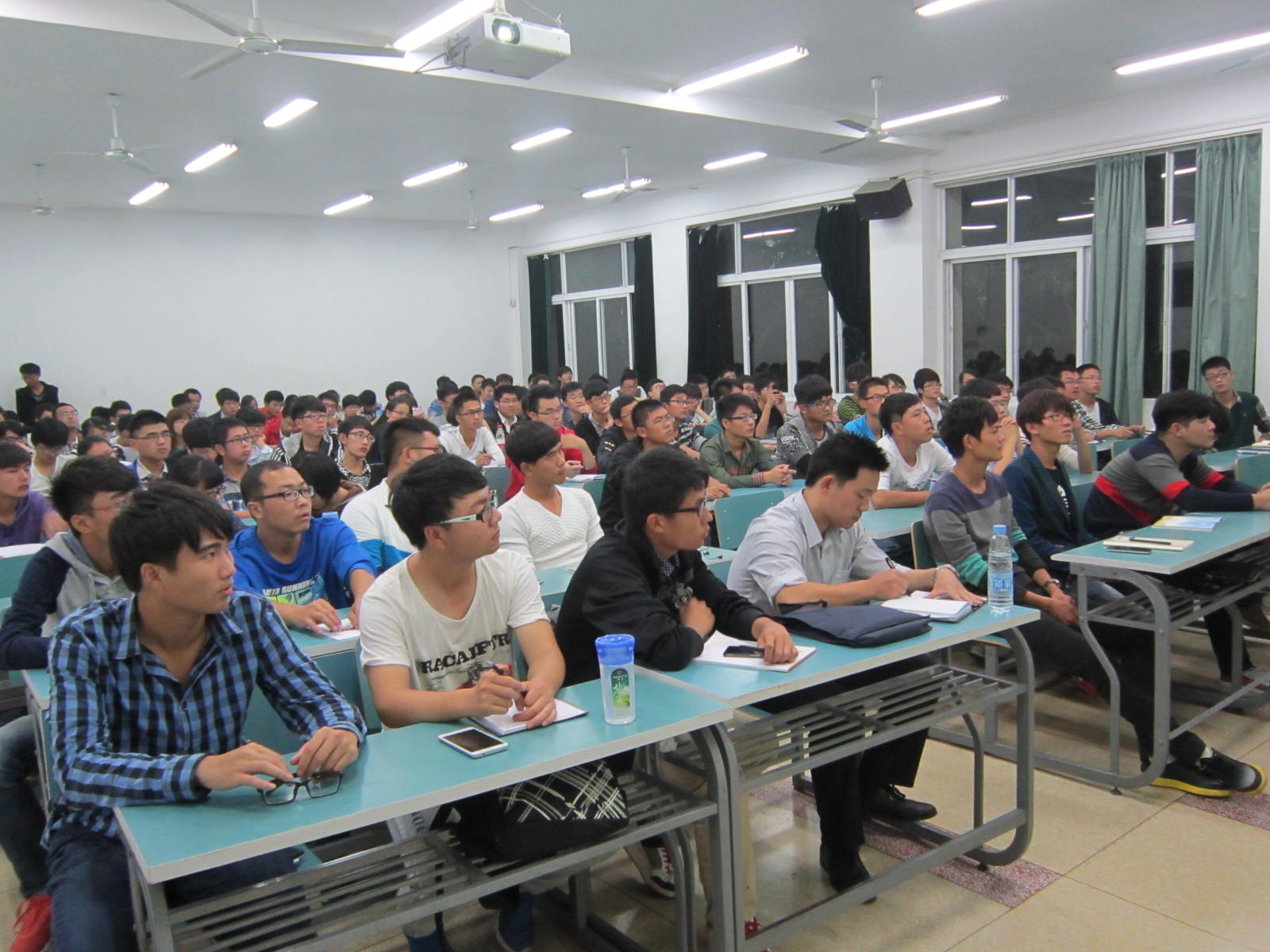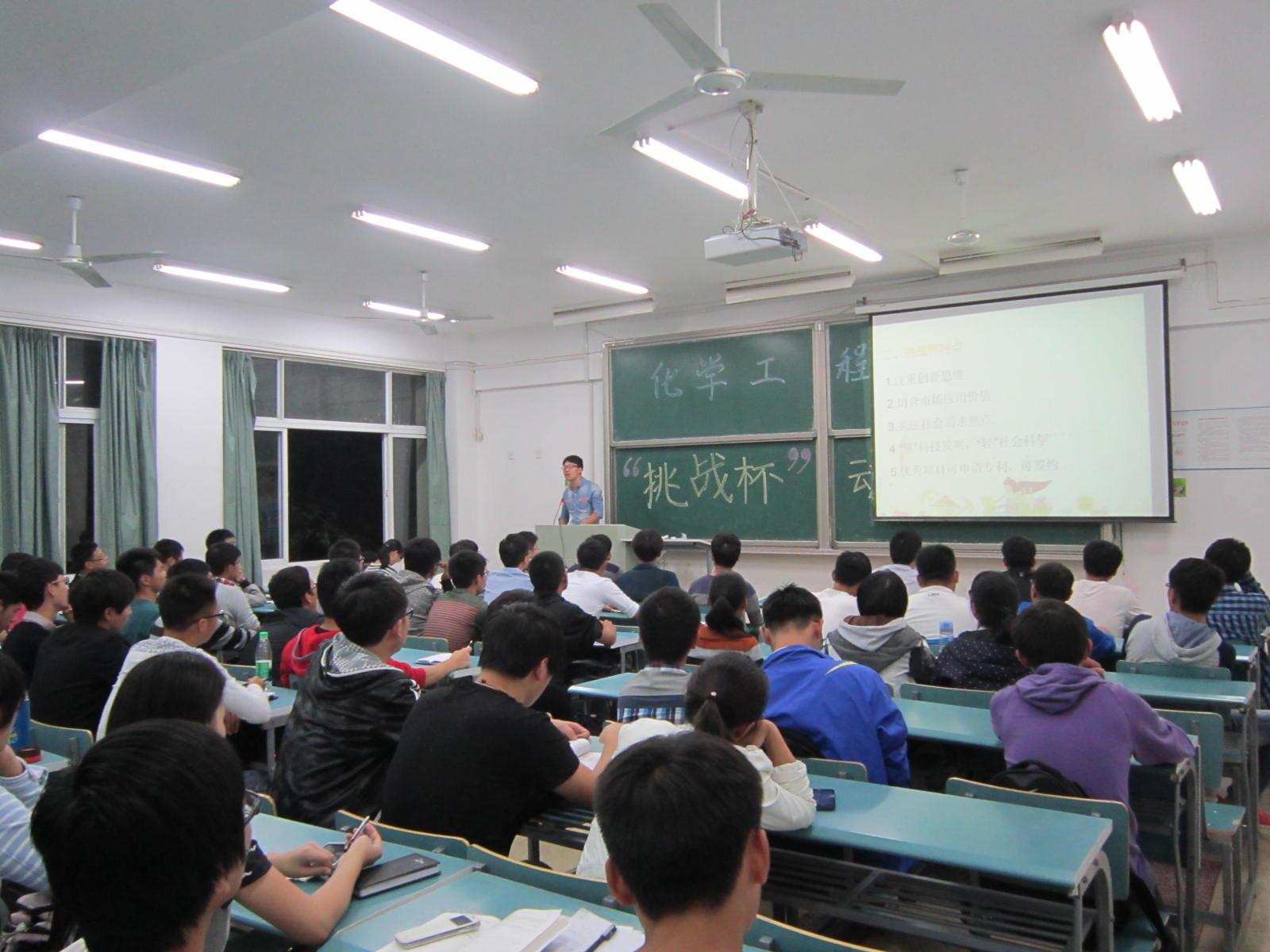 高干详细介绍了“挑战杯”竞赛的项目、参赛要求等基本信息,并列举了科技发明的一些实例,提出了科技创新的建议,为同学们指明了方向。随后星火社韩兴旺同学跟大家分享了自己的专利及申请心得。最后,13级辅导员高圣涛围绕团队组建、专利申请等方面提出建议,强调学生干部要加强课外学术科技竞赛的宣传及动员,鼓励同学们通过参加“挑战杯”竞赛培养创新能力、提高工程素质。