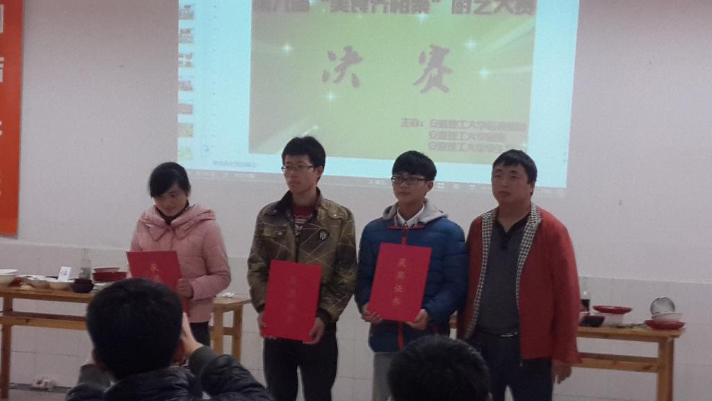 11月29日上午,安徽理工大学第九届大学生“美食齐相聚”厨艺大赛在北区食堂三楼成功举办。化学工程学院荣获最佳创意奖以及优秀组织奖。