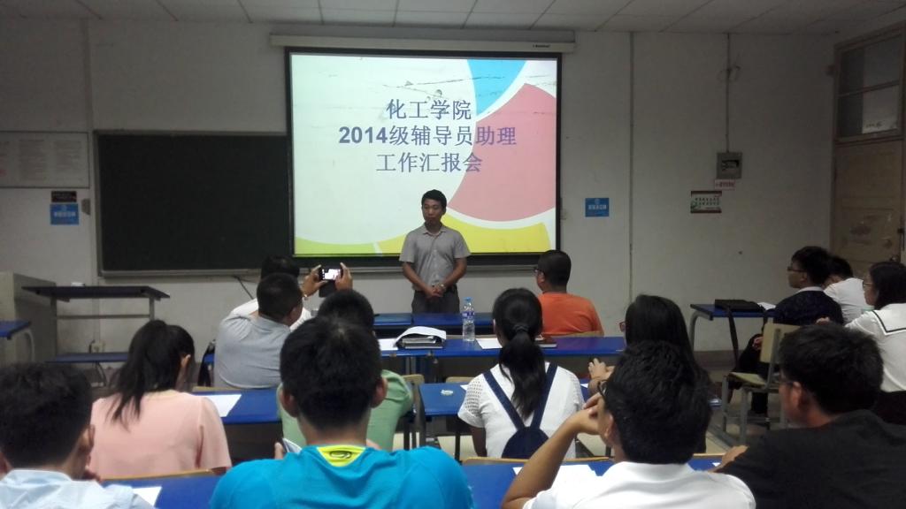 为进一步提高辅导员助理的责任意识和业务素质,9月8日晚,化工学院在北校区1101教室召开2014级辅导员助理工作考核暨2015级新任辅导员助理培训会。学院党委副书记徐泽绵,有关辅导员及辅导员助理、2014级学生评委共60余人参加会议。