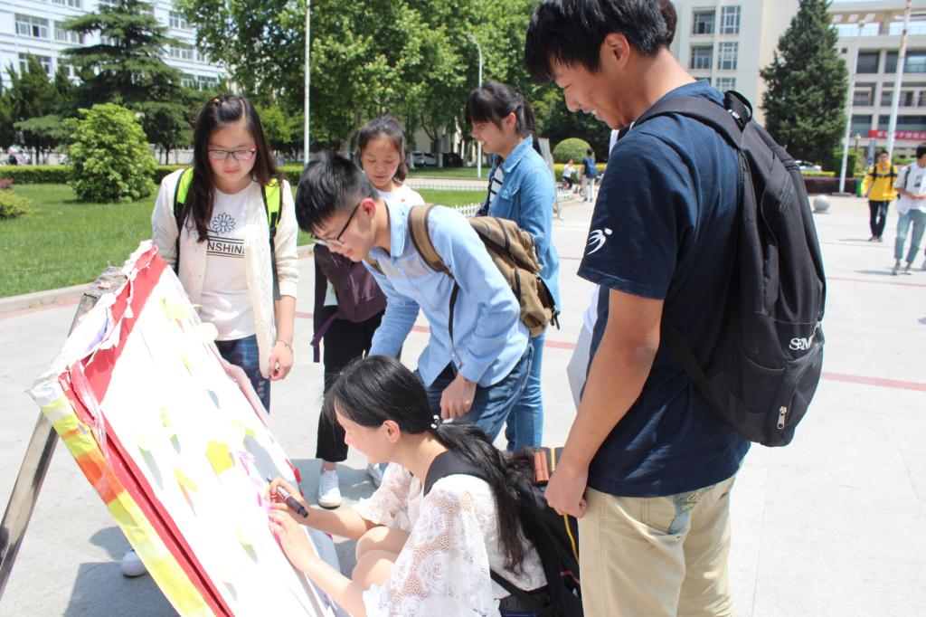 活动分“五四”历史宣讲、重温入团誓词、青年心语交流、网络寄语四个板块,同学们热情高涨,积极参与。由大一各班团支书组成的宣讲团,向参观的同学们介绍“五四运动”的时代背景、发展过程及重要意义,发放印有“爱国、进步、民主、科学”字样的宣传册,重温那段青年学子发起的爱国运动;在“青年心语”留言区域,同学们写下自己的“青年之声”,张贴在展板上,并积极与在场观众互动交流。志愿者还将这些青年誓言通过学院官方微博、微信发布,与全校学子进行在线交流。最后,全体团员青年面向鲜艳的团旗,重温了入团誓词,爱国情感激荡在每个人的心灵。