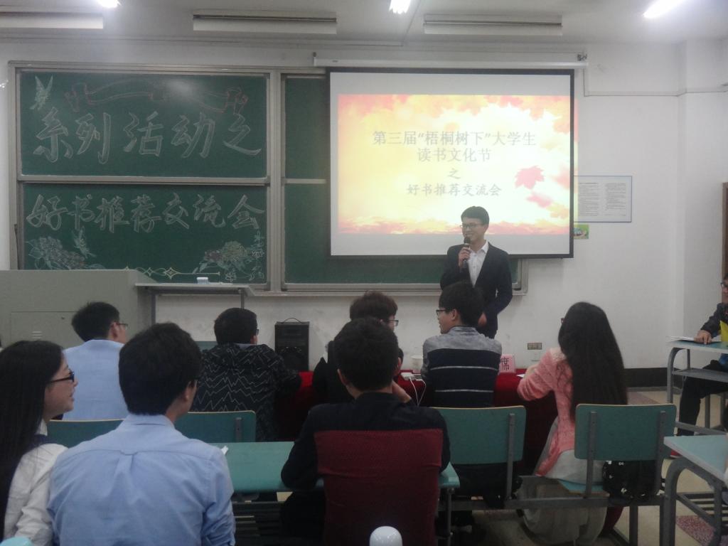 4月22日晚,经前期初选,来自8个学院20名参赛选手参与的好书推荐交流会在北实204教室举行,推荐人配合着现场音乐,将个人感情融入到书的情节中,或激情澎湃、或低沉温婉地向大家讲述了《安娜卡列尼娜》、《明朝那些事儿》、《阿弥陀佛,么么哒》等作品的感人故事,畅谈自己的阅读体会和推荐理由,在分享中让听众与观众发生共鸣,让心灵得以启迪,修养得以提高。最后,经评委以打分形式认真推选,弹药15-3班李松林获一等奖,数媒15-1班王顺等2位同学获二等奖,自动化14-2班时美乐等3位同学获三等奖,地信14-1张宇洪等14位同学获优秀奖。