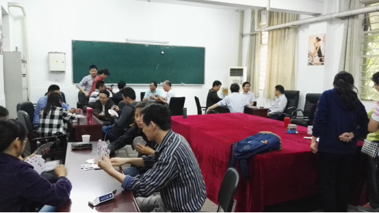 为缓解工作压力,促进相互交流,5月13日下午,化学工程学院工会在院会议室举办教职工“掼蛋”比赛。