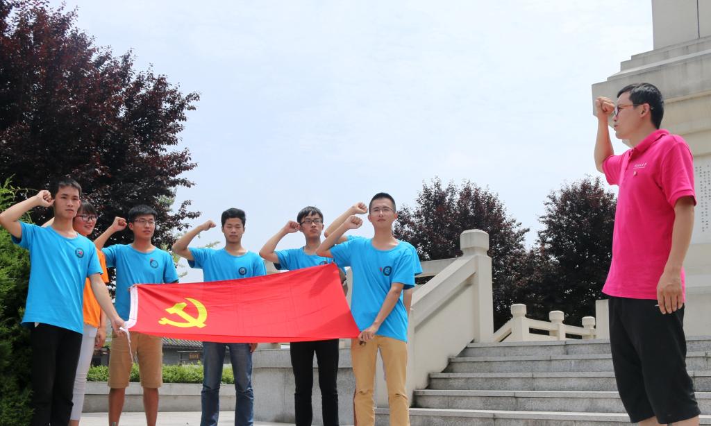 “七一”前夕,为进一步组织学生党员深入开展“两学一做”学习教育,化学工程学院学生第一党支部于6月26日组织学生党员、入党积极分子赴寿县小甸镇,到安徽第一面党旗纪念园暨中共小甸集特支纪念馆参观学习,并在烈士纪念碑前重温入党誓词。