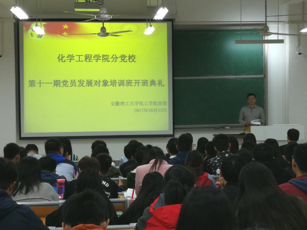 10月13日晚,化学工程学院分党校第十一期党员发展对象培训班在天工101举行开学典礼。学院党委书记徐冬生参加了开学典礼。