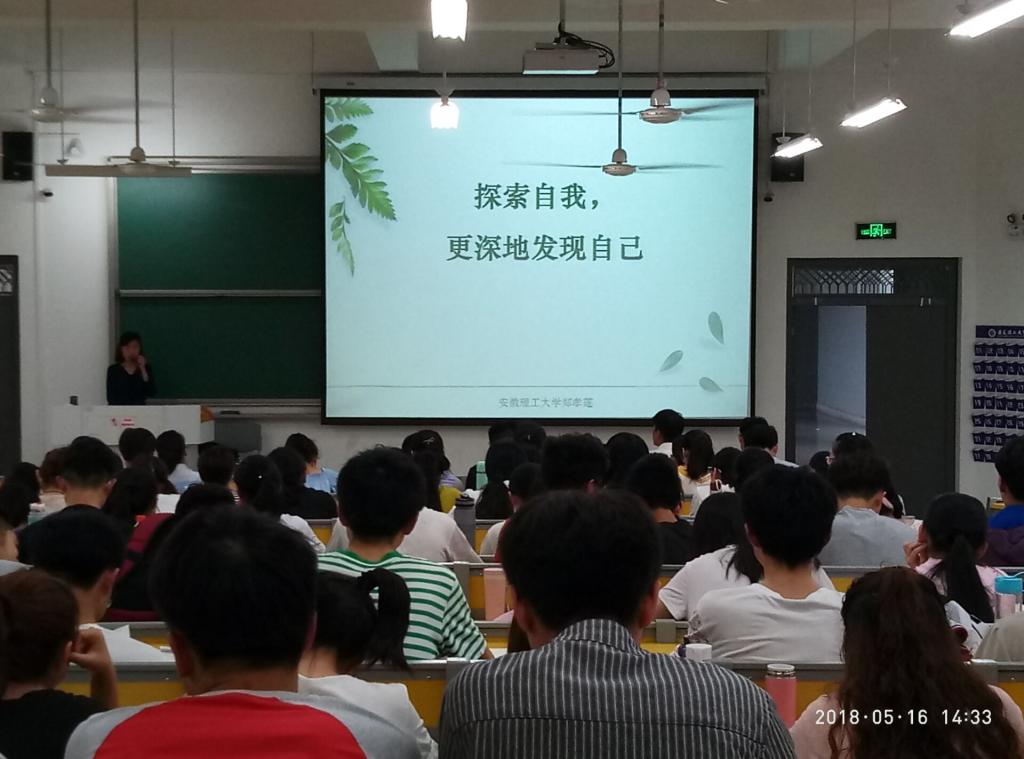 为进一步增强大学生自我调节、承受挫折和适应环境的能力,提高学生的自我认知水平,化工学院于5月16日下午在明理202教室举办了主题为“探索自我,更深地发现自己”的心理讲座。学院心理辅导站副站长、国家二级心理咨询师郑孝莲老师主讲。学院2016级、2017级200余名学生听取讲座。