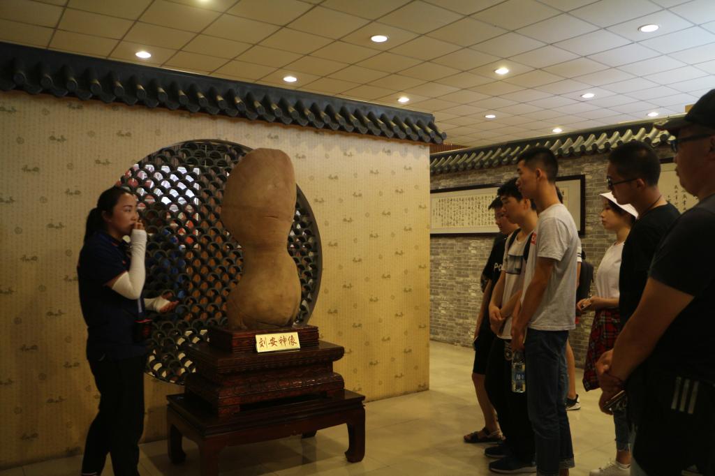 天宝双遗文化园里,在讲解员的带领下,调研组成员详细了解了紫金石博物馆、寿州窑展示馆、古寿州窑址展示馆、非物质文化遗产文化研发传承基地等有着浓厚的文化古韵的展馆。展馆里面保存了寿窑传承人的大量作品。通过参观这些惟妙惟肖的窑制品和紫金石雕刻品,调研组成员们感受到浓浓的文化气息。