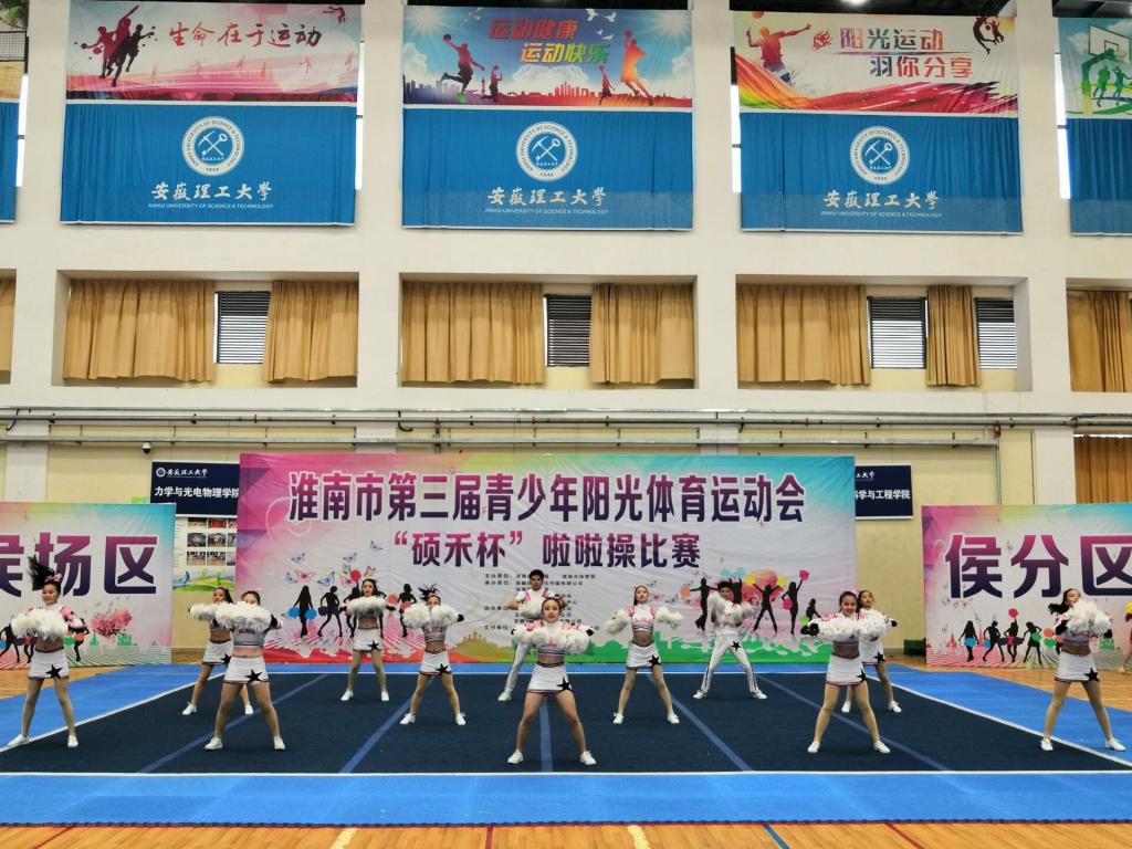 11月24号,由淮南市体育局、淮南市教育局主办,安徽省硕禾文化传媒有限公司、淮南市啦啦操运动协会、淮南市社会体育指导中心和我校共同承办的淮南市第三届青少年阳光体育运动会“硕禾杯”啦啦操比赛在我校自强体育馆成功举办。淮南市各县(区)体育行政部门、大中专院校、中学、小学、幼儿园等院校的啦啦操队伍参加此次比赛。化学工程学院参赛队夺得大学组团体总分第一名的佳绩。