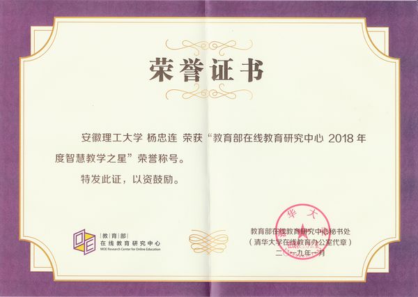 日前,教育部在线教育研究中心公布了2018年度“智慧教学之星”荣誉称号的评选结果,全国共有199位教师获得此项荣誉称号,我校化学工程学院杨忠连老师榜上有名。