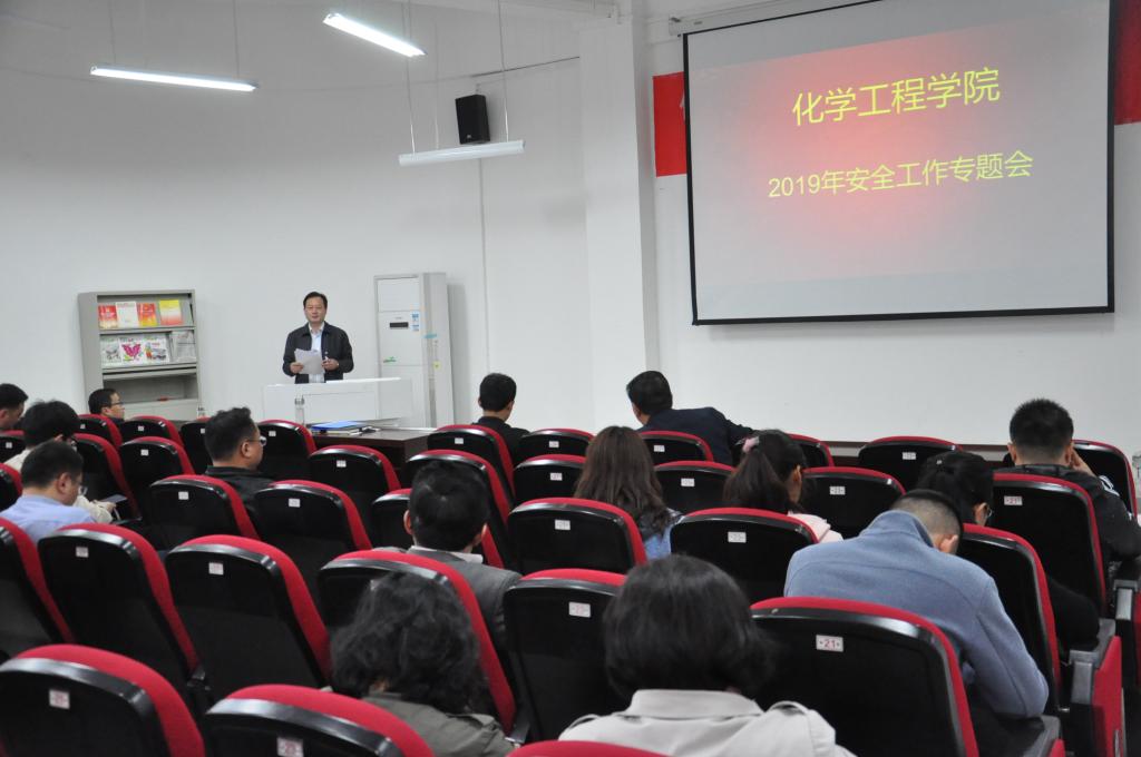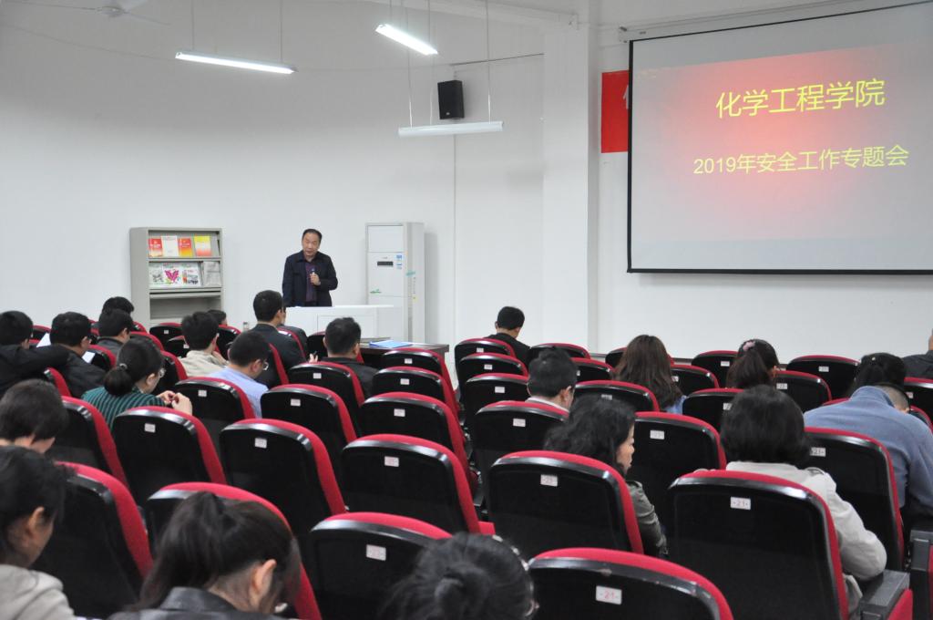 为切实贯彻学校2019年安全工作会议精神,4月15日下午,化工学院召开全体教职工安全专题会议,全面部署化学工程学院2019年“安全年”活动,推进实验室安全、学生安全教育等重点工作落实,并签署安全责任书。学院党政领导及教职员工一百余人参会。