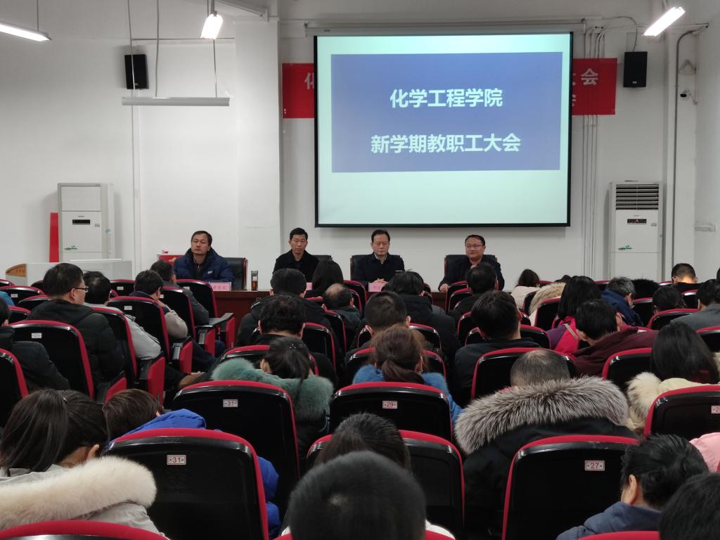 2月23日下午,化工学院在新学期伊始召开全体教职工大会,部署开学初和本学期相关工作,学院党政领导班子及全体教职工参加大会。学院党委书记徐泽绵主持会议,院长邢宏龙进行工作布置。