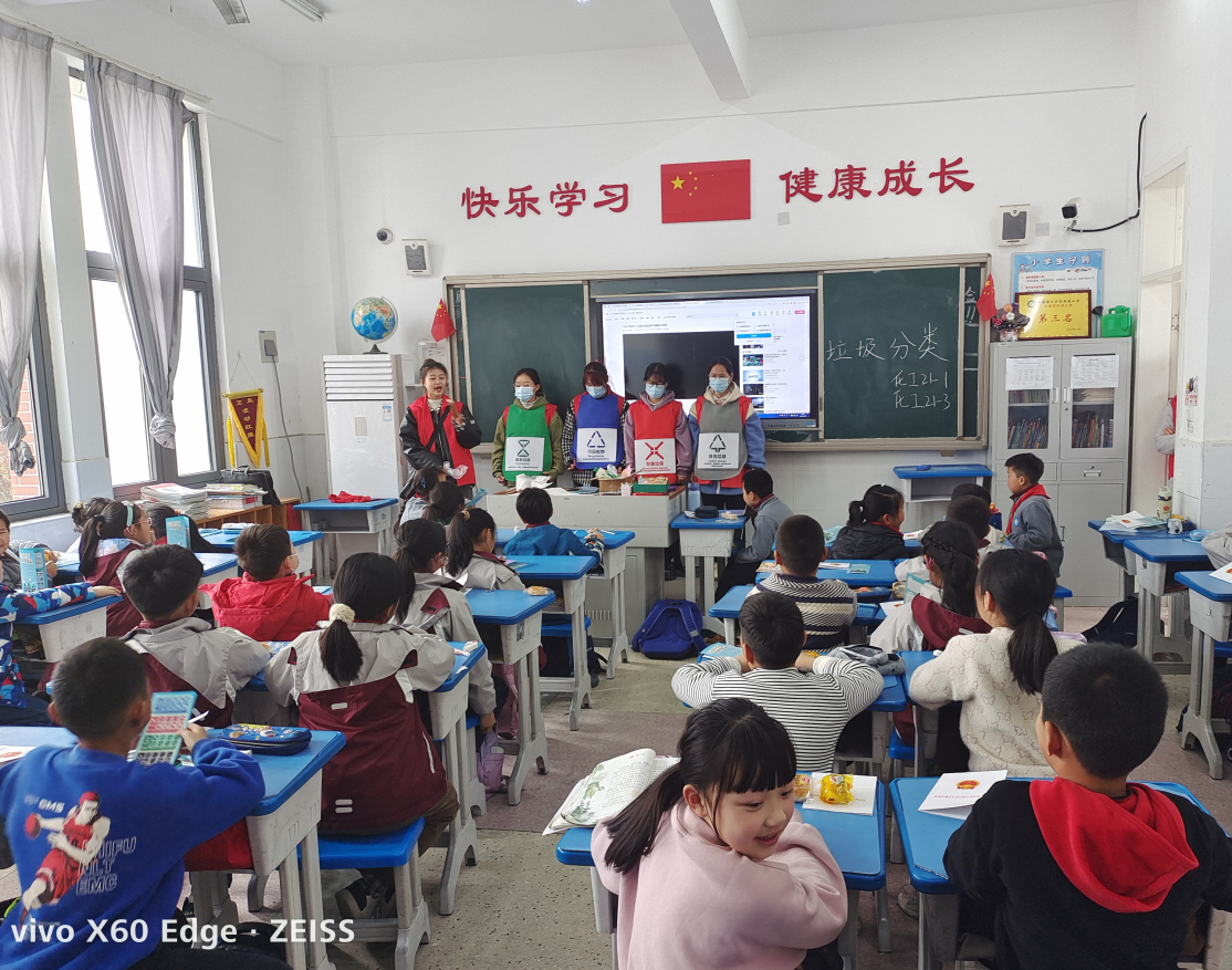 3月21日,志愿者们来到理工大附属小学三年级1班的课堂上,给小朋友们上了一堂意义非凡的垃圾分类课。课上,志愿者陈雨轩通过PPT和实物展示的形式让小朋友们认识到垃圾的危害和乱扔垃圾对我们环境的影响,并且带领小朋友们学习有关垃圾分类的知识,同时通过知识问答的方法来检验大家学习的成果。在提问的过程中,小朋友们热情高涨、争先恐后地抢答问题。志愿者们对答对的小朋友分发了环保主题的卡通人物和手伴,以示奖励。