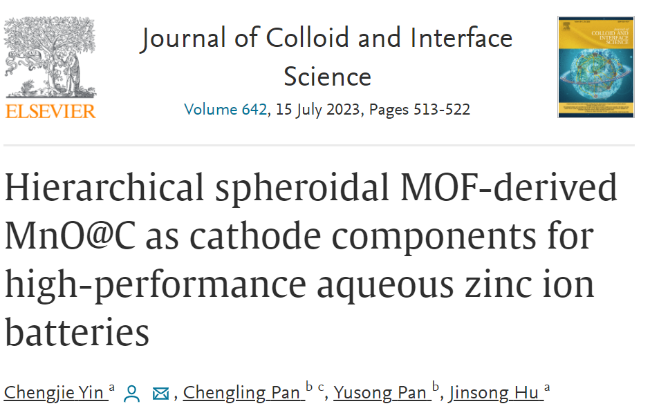 近日,化学工程学院青年教师尹成杰博士在水系锌离子储能研究领域取得重要进展,其成果《Hierarchical spheroidal MOF-derived MnO@C as cathode components for high-performance aqueous zinc ion batteries》在中科院一区TOP期刊Journal of Colloid and Interface Science上发表(2022年影响因子9.965),安徽理工大学为第一单位。
