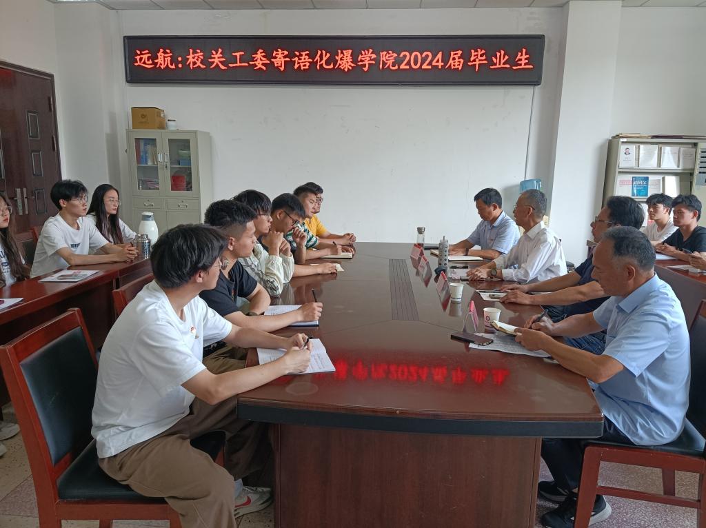 5月28日下午,校原党委副书记、校关工委常务副主任王洪应邀前往化工与爆破学院,在崇礼南楼101会议室与学院2024届毕业生代表进行座谈。校离退休工作处处长桂曙光和20多名毕业生代表参加座谈。座谈会由学院党委书记徐泽绵主持。