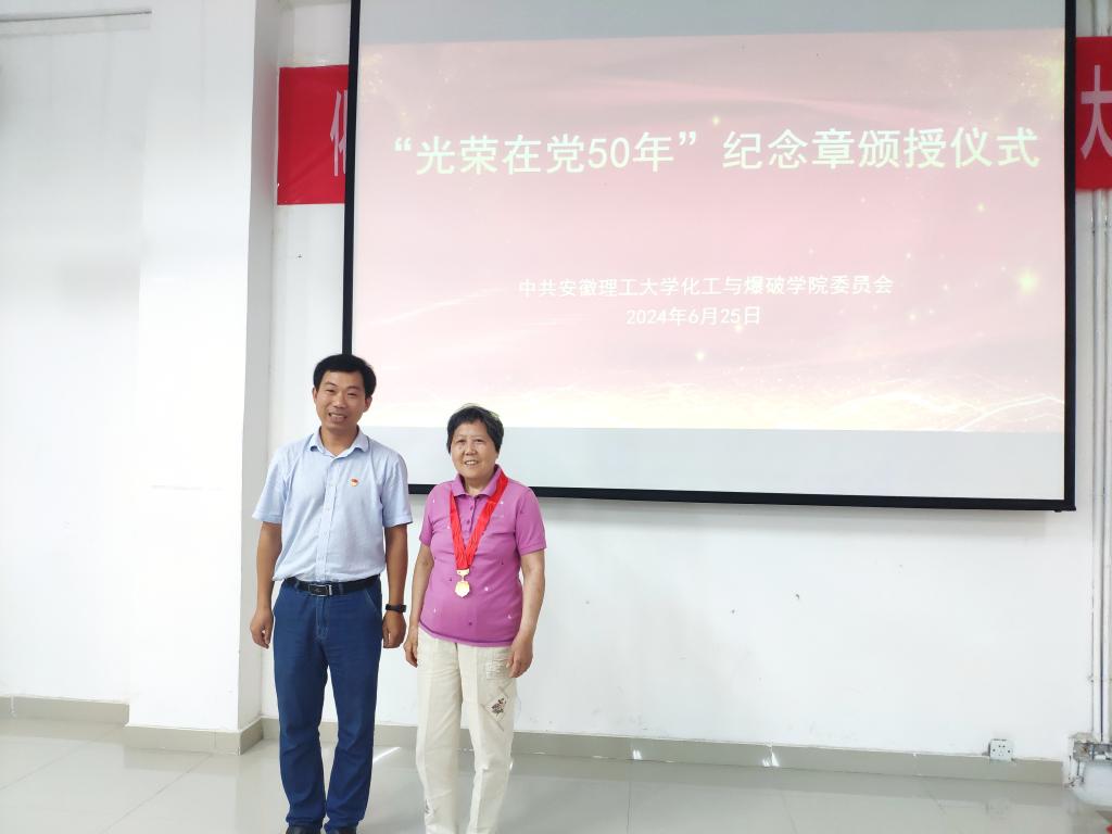 为扎实推动党纪学习教育走深走实,更好对全体党员开展党性教育,6月25日下午,化工与爆破学院在崇礼楼东102报告厅举行党委理论学习中心组(扩大)学习会暨“光荣在党50年”纪念章颁授仪式。学院全体师生党员参加会议。