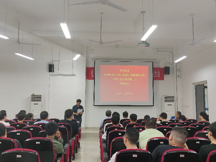 化工与爆破学院党委书记徐泽绵致辞。他对门卓武主任的到来表示热烈欢迎,并表示希望在未来加深企业与高校间的合作交流、共谋发展进步,最后预祝本次学术报告会圆满开展。