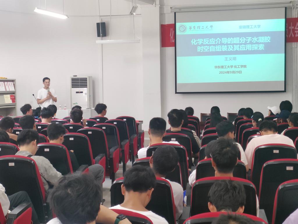 9月29日上午,应科研部、化工与爆破学院邀请,知名校友、中国煤炭科工集团首席科学家王乃继研究员和化东理工大学王义明教授在崇礼楼东102报告厅作了题为《分布式燃煤低碳、绿色转型思考及初步实践》和《化学反应介导的超分子水凝胶自组装及其应用探索》的学术报告。报告会由化工与爆破学院副院长胡劲松主持,学院教师及研究生120余人参会。