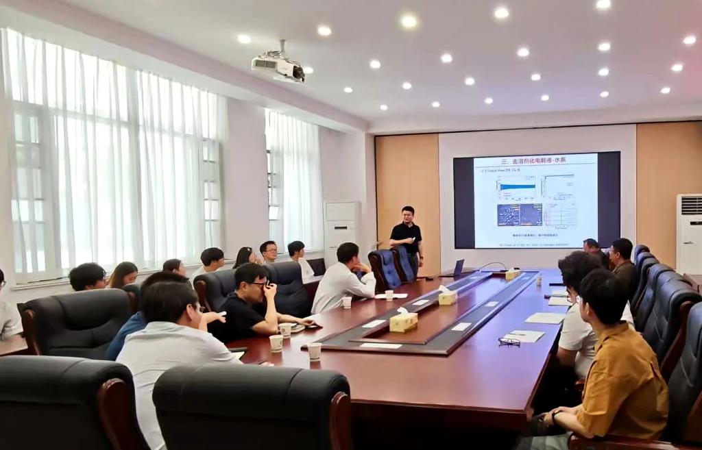 常智教授在报告中以新能源电动汽车的快速发展为切入点,指出电池中正极材料在与电解质匹配时,面临着NCM正极相变、二次颗粒晶界的大范围开裂、正极电解质界面(CEI)不稳定、电解质持续分解等问题,而基于多孔材料的筛分化学,可以实现溶剂的预去溶剂化,实现高能量密度、高循环稳定性以及充电速度快的可充电电池的制备。在互动环节常智教授就新型电池的发展、正极材料的制备方法等问题与与会师生进行了深入交流,为相关研究提供了新思路。