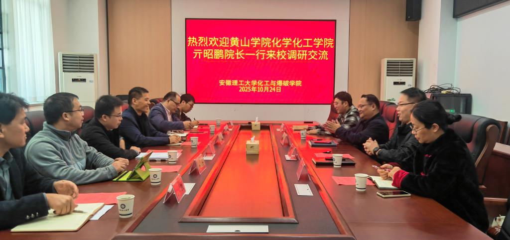 10月24日上午,黄山学院化学化工学院副院长(主持工作)亓昭鹏一行到我校化工与爆破学院,开展专题调研交流活动。此次访问旨在加强安徽省内高校间的协同发展,借鉴先进办学经验,共同推动高等教育质量提升。我校化工与爆破学院党委副书记、院长汪泉,副院长胡劲松等人接待了来宾。