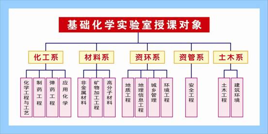 化学实验室现有专职实验技术人员9人,其中,高级职称1人,中级职称人员4人。承担着学校5个系14个专业的普通化学、工科化学、无机化学、分析化学、有机化学、物理化学等实验课程的教学任务。每年接收学生实验班级近135个,实验学生人数约4800。近年来,广大教师和实验室人员在实验教学、实验技术、实验装置的制作和改进等方面进行了广泛的研究,取得了一定的成绩。如《微型有机实验仪器的研制与使用》获2000年淮南工业学院教学成果一等奖,先后出版了《工科化学实验》、《普通化学实验》、《物理化学实验指导》、《有机化学实验指导》教材。