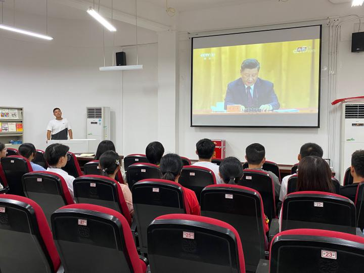 9月11日晚,化工学院于崇礼楼102报告厅组织18、19级团支书集中观看全国抗疫表彰大会及学习分享交流活动,一起感受在抗击疫情中彰显的中国精神、中国力量、中国担当。