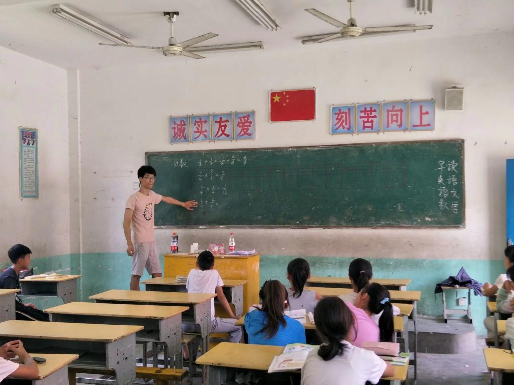 经过组内成员与村委会联系得到了村委会的支持,在与桃山小学校方取得联系后,校方对同学们的到来表示欢迎,并愿意提供教室。经过团支部会议决定,支教活动为期一周,主要为辅导孩子们完成暑假作业。经过村委会与当地老师的联系,支教活动便正式开始。村委会工作人员为同学们安排了食宿地点。7月20日晚,团支部在会议讨论后制定了作息时间表。7月21日授课正式开始,同学们着手布置教室,孩子们也纷纷拿起扫把打扫起来。按照作息时间表的安排,团支部成员在课堂中帮助孩子们解答问题,在课间就与孩子们一起玩耍。活泼可爱的孩子们让这个校园在暑期也充满了欢声笑语。
