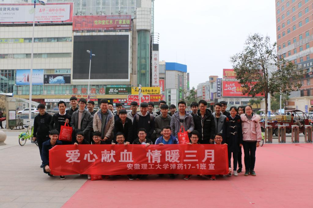 3月17日,化学工程学院弹药17-1班团支部联合淮南市红十字中心血站华联献血屋开展爱心献血与宣传活动。虽天气阴冷,却丝毫不影响支部成员积极献血的热情。