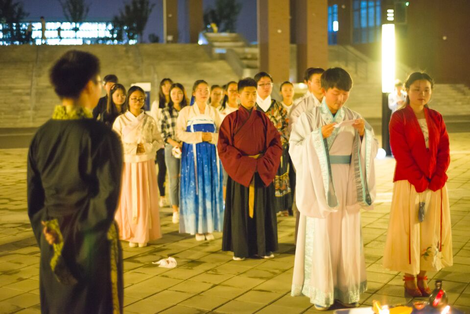 在学校里,同学们穿上汉服,在百川楼前宣传淮南地区的风土人情、文化遗产、特产小吃、历史遗迹、人文景观、地名沿革、民间艺术、语言文化等内容,深深的吸引了过往的同学们,纷纷驻足观看、体验。先后有百余人来参加了我们的体验活动,达到了良好的宣传效果。