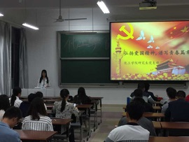 会议主题为“弘扬爱国精神,谱写青春篇章”。会上,支部党员和积极分子代表积极发言,以图文并茂的形式,从战争年代的爱国精神讲起,那一次一次战役,无数英雄儿女的浴血奋战,为新中国成立抛头颅洒热血的爱国情怀深深的震撼了与会人员。大家纷纷表示:要铭记历史,不忘初心,在新时代下,不能忘记先辈们的付出,努力提高自身的科学文化素养,学好知识,强健身体,谱写青春篇章,为实现伟大的中国梦尽自己的一份力。