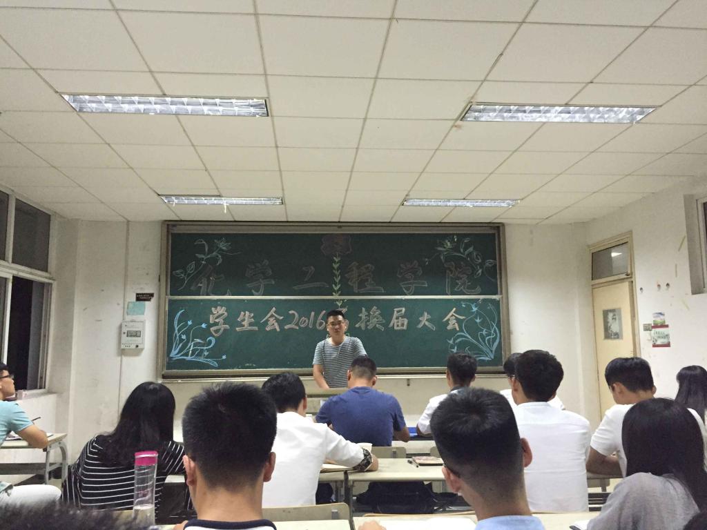9月22日晚,化工学院学生会于北区3406教室举办换届大会。院团委副书记杨志华老师和周昌贵老师参加了此次大会。