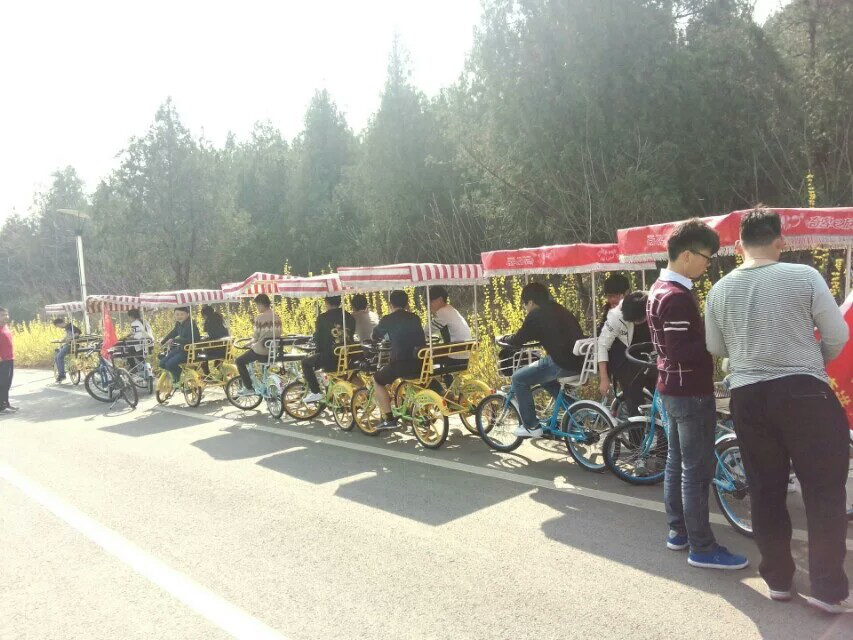 上午9点,踏上双人脚踏车,绑上先前准备好的旗帜,同学们开启了新颖的雷锋精神宣传之旅。行驶在舜耕山的环山公路上,同学们走走停停,向行人介绍雷锋精神,号召大家绿色出行,一面面宣传旗帜,吸引了不少游人的注目,有的主动上前询问此行的目的,并对活动进行了肯定,最后,同学们选定在一个人员较多的地方拉起横幅,进行集中宣传,收到了良好的效果。