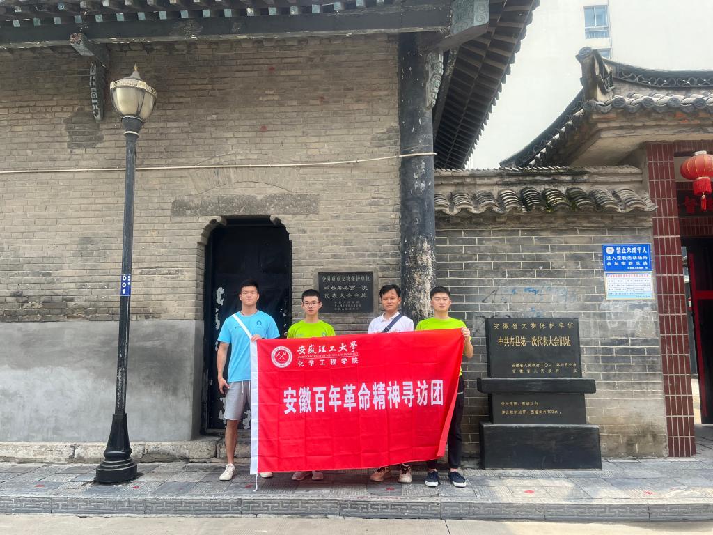 近日,“安徽百年革命精神寻访团”开展大寻访活动,来自安徽理工大学化学工程学院的20位寻访团成员,先后通过参观凤台县抗日民主政府纪念园、中共寿县一大会址等红色景点,迎七一看望慰问老人、老党员,重温入党誓词等活动,实地体验老一辈革命先驱的艰苦奋战历程,寻访红色足迹,重温红色历史,开展红色教育,感悟红色精神。