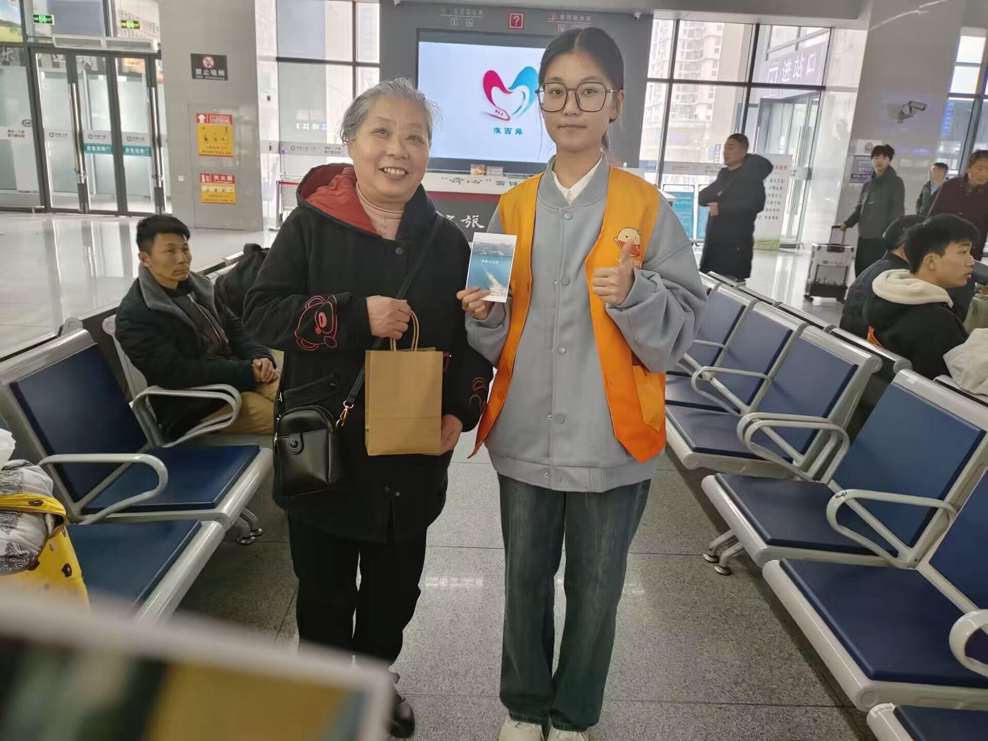 3月16日至3月17日,应化23-2班级同学自发组织志愿者,在淮南站和淮南南站开展“雷锋月,志愿行”的志愿服务活动。活动期间,同学们不仅积极为旅客提供帮助,也准备了一些淮南特产和印有淮南风景的明信片,送给外地旅客,积极宣传淮南文化。