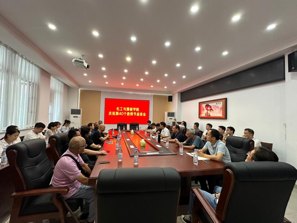 为迎接第40个教师节的到来,更好传承优秀师德师风,9月6日下午,化工与爆破学院在“一站式”学生社区召开庆祝教师节座谈会。会议由学院党委书记徐泽绵主持,学院领导班子成员、各系负责人、2024年安徽省优秀教师获得者、退休教师代表以及新进教师参加座谈。