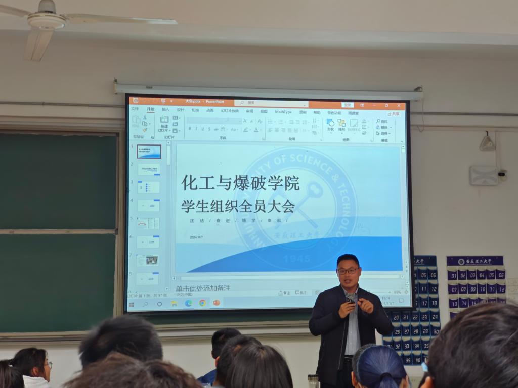 11月7日晚,化工与爆破学院在明理北312教室召开2024年学生组织全员大会。学院团委负责人、学生组织全体成员120余人参加会议。