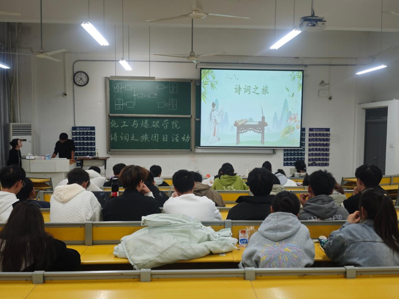 为弘扬中华传统文化,丰富校园文化生活,化工与爆破学院于2024年12月1日在明理北108开展了一次团日活动“诗词之旅”。