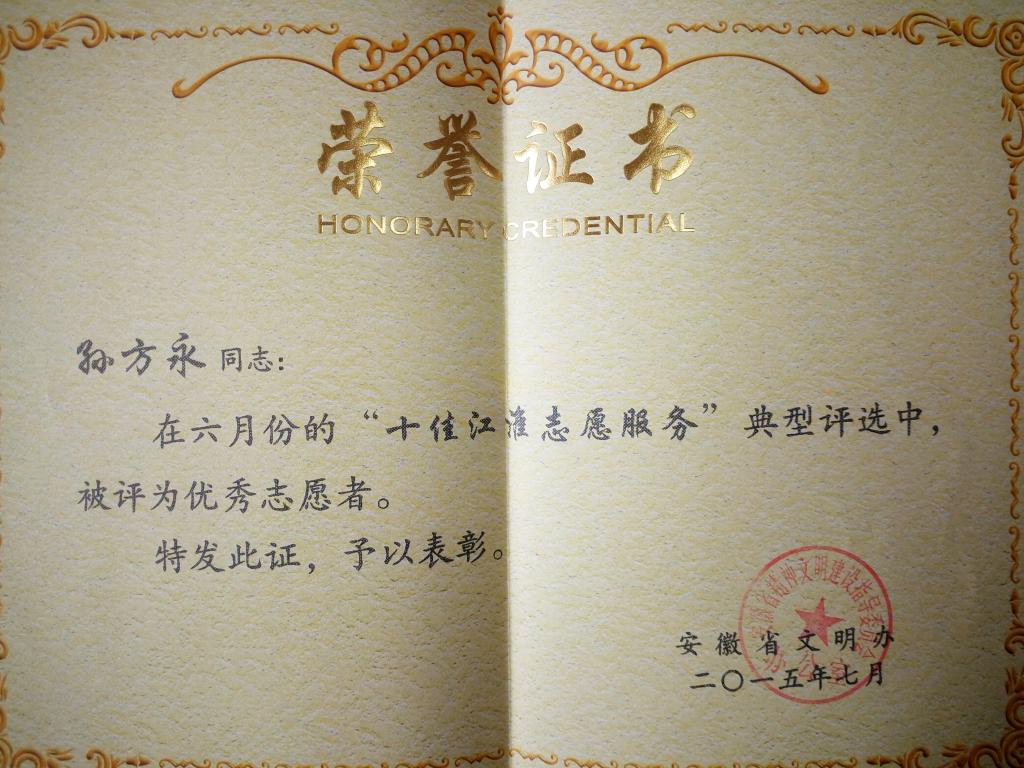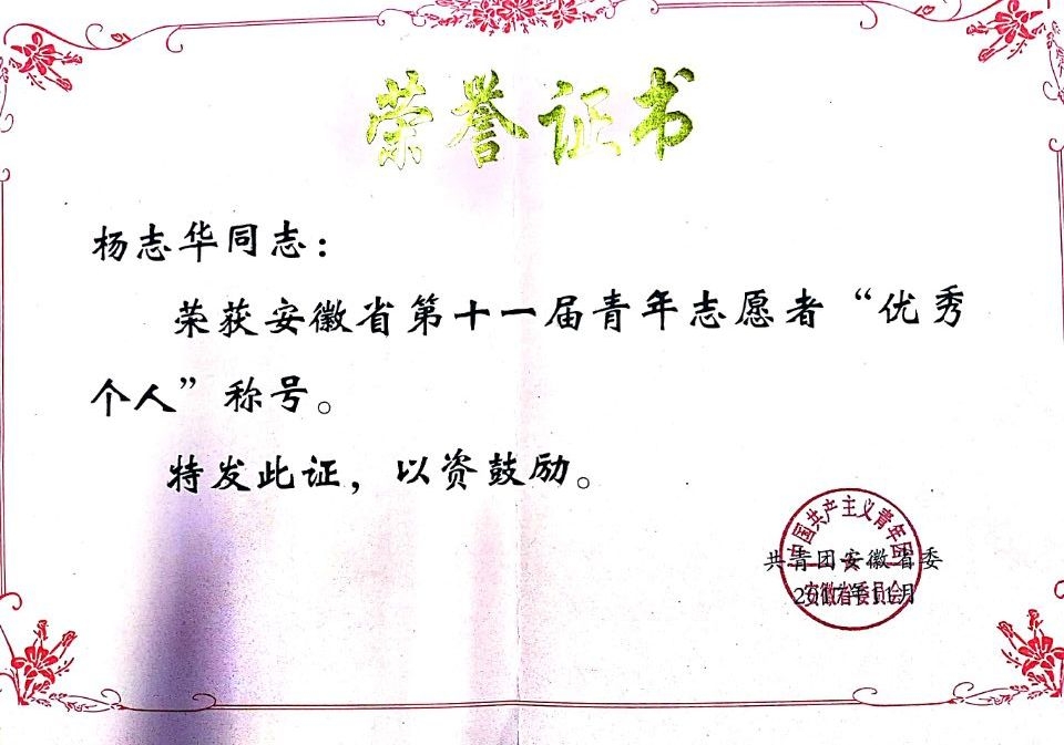 (三)教育效果突出。广大青年在帮扶中不断成长,践行社会主义核心价值观的信念和决心不断增强,社会责任感和志愿服务精神不断提高,思想道德素质不断提升,良好的学风校风不断被带动,涌现出中国大学生自强之星提名奖、安徽省十佳大学生、安徽省优秀大学生、安徽省学雷锋志愿服务先进典型、安徽省青年志愿者先进个人、安徽省“向上向善”好青年、淮南好人、淮南市优秀志愿者、校道德模范、校园十佳青年30余人次。