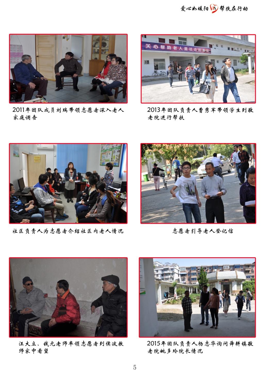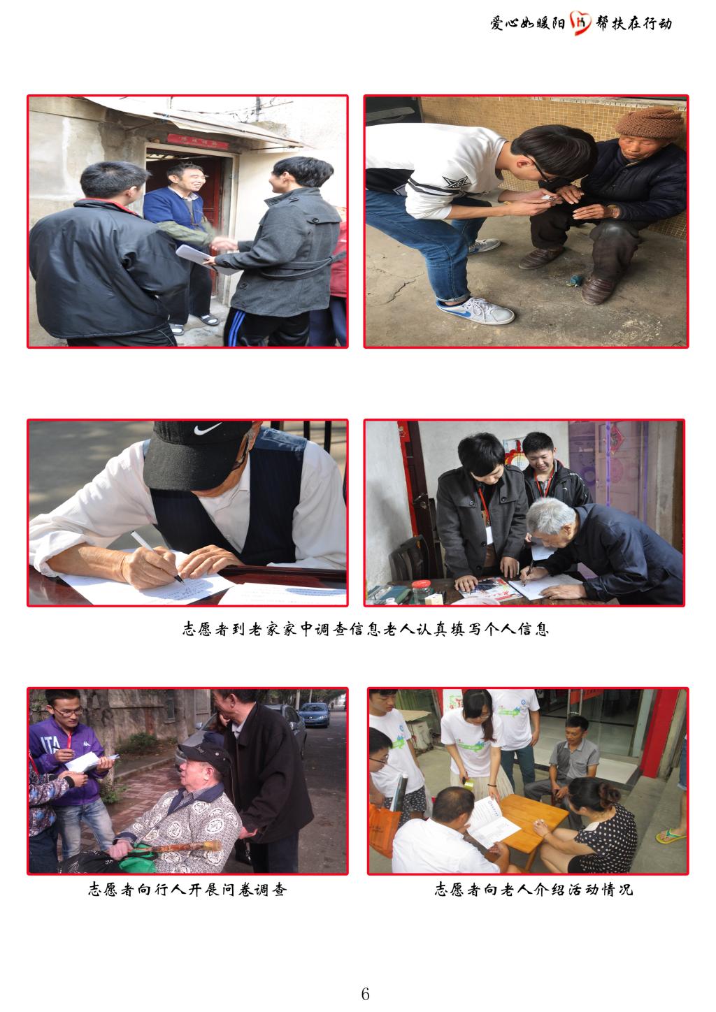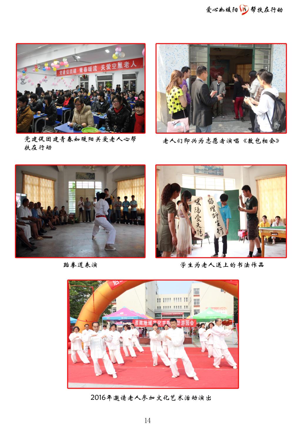 (三)建立帮扶中心,开展结对帮扶。暖阳爱老学校与相关家庭建立“一对一”帮扶机制,广泛开展帮扶工作;在敬老院建立帮扶中心,进行集中帮扶;在较近的社区建立了“暖阳爱老学校社区分校”开展长期固定帮扶;在较远的社区开展定期灵活帮扶,采取“一对一”结对与集体帮扶相结合的方式,对无子女老人、与子女分开居住老人等进行帮扶和关爱。