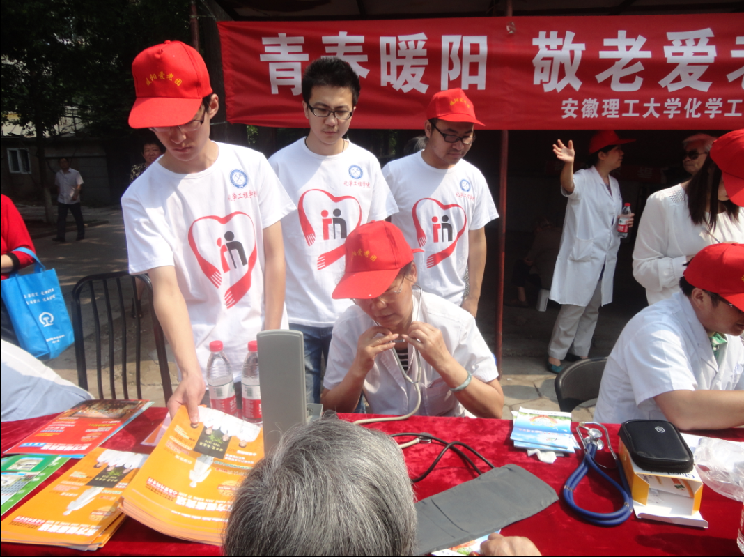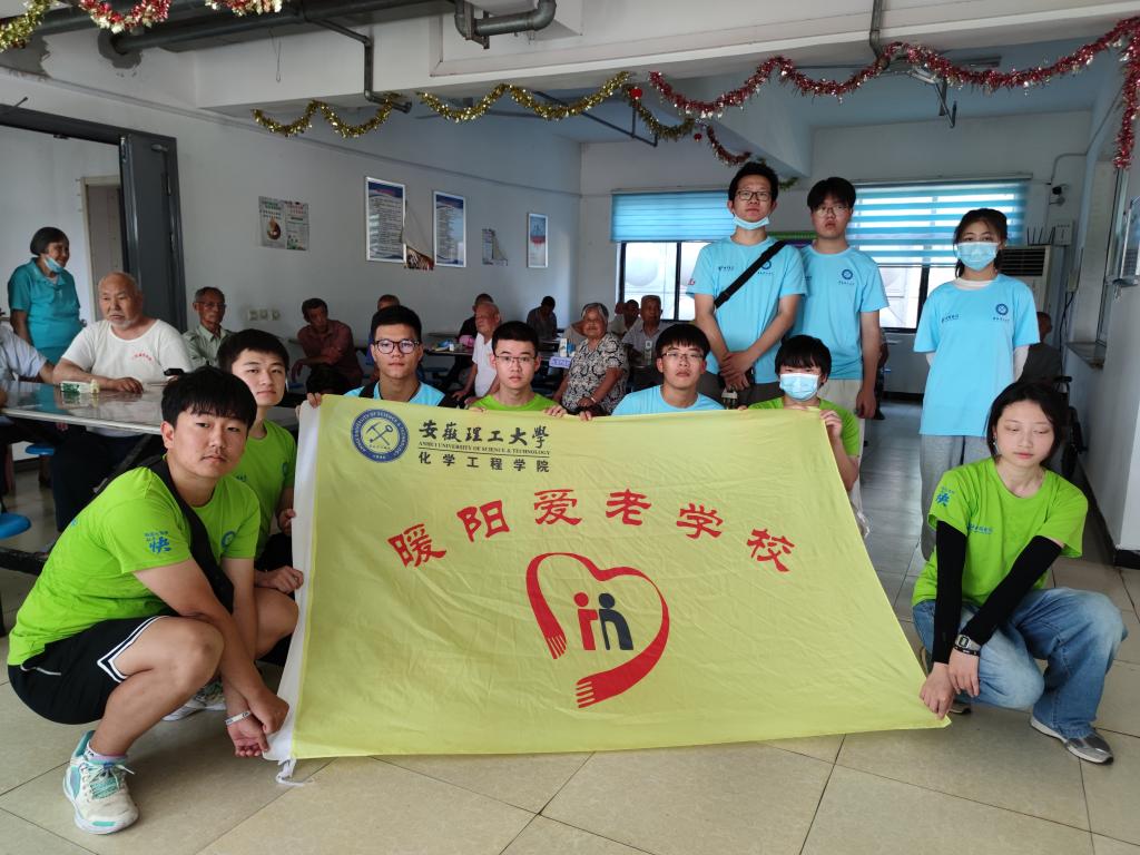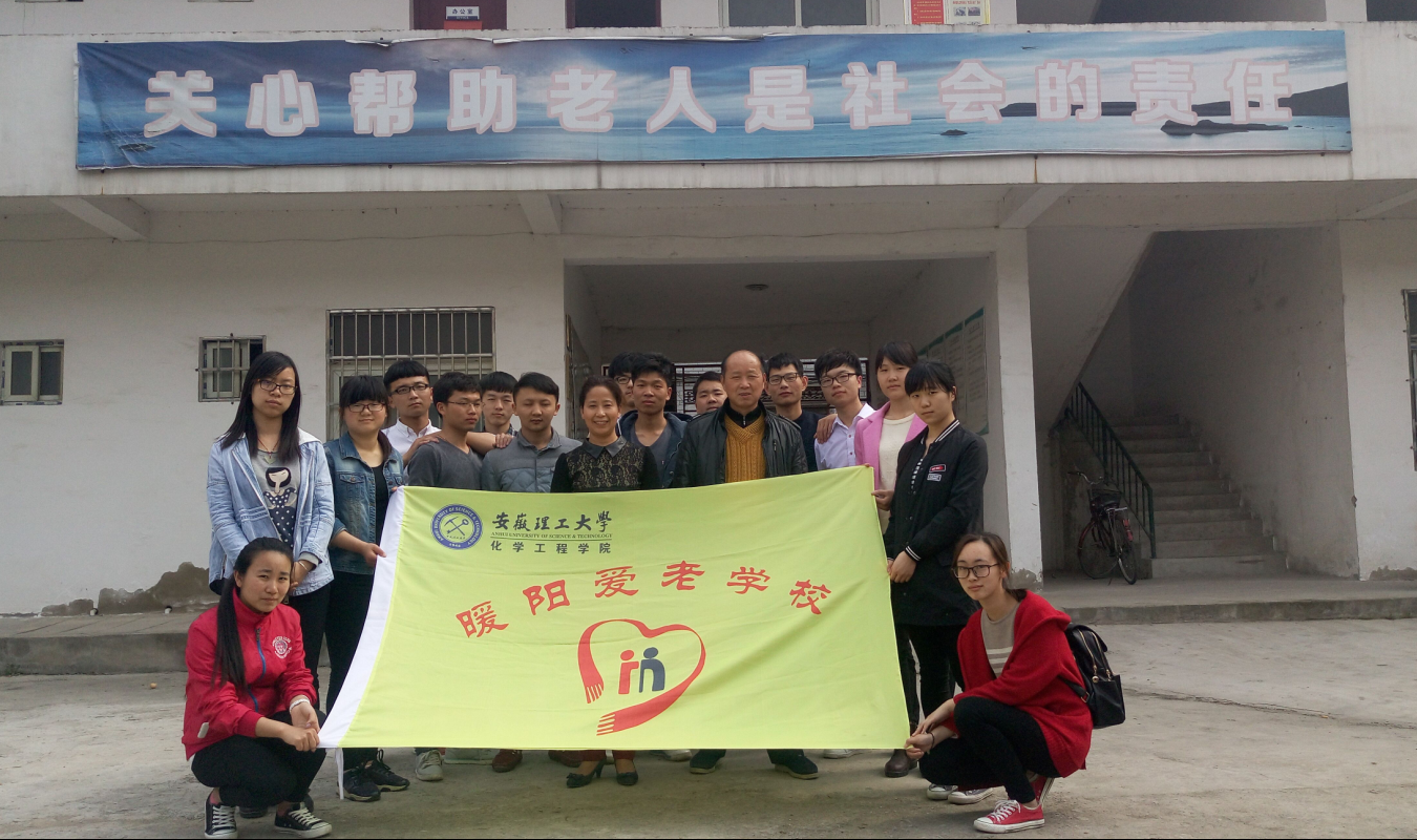 安徽理工大学积极响应国家关爱老年人的号召,主动承担发展老龄事业的社会责任,于2011年10月建立暖阳爱老帮扶小组。该帮扶小组在调查中了解到学校周边社区还生活着不少空巢、行动不便、急需帮助的困难老人,为了保证服务效果,需要一个强大的团队做支撑,于是,2013年10月,在帮扶小组的基础上组建暖阳爱老团,同时建立帮扶困难老人网络公益爱心联盟,招募志愿者。2015年3月,为实现青年学子与老人的互帮互助,特别是强化老人对学生的理想信念教育,又在暖阳爱老团的基础上组建暖阳爱老学校。现已成为大学生践行尊老敬老实践,老人协助青年健康成长的公益平台。
