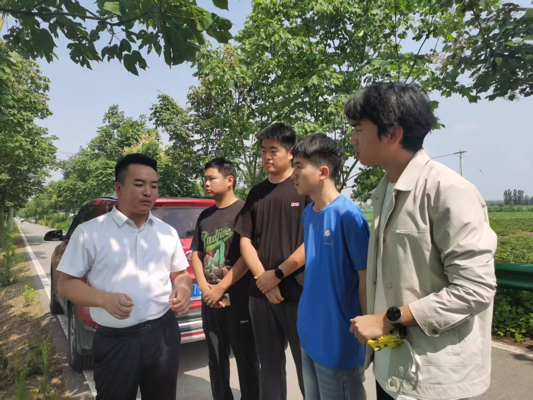 调研团成员在十河镇大周村听取村委的介绍(摄影:韩建超)