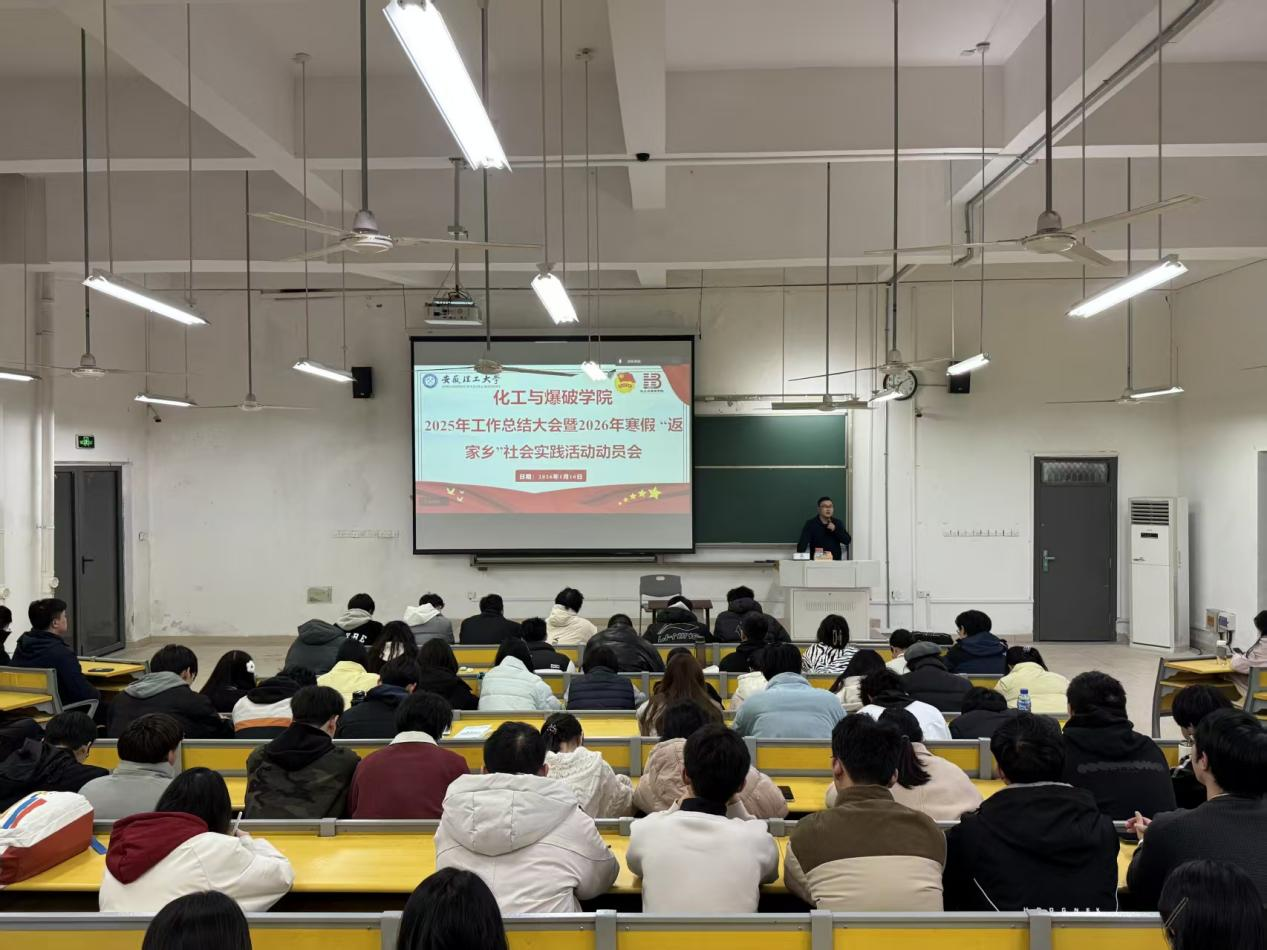 1月16日,化工与爆破学院在明理南106召开2025年度共青团工作总结大会暨2026年寒假返家乡社会实践动员会,学院团委负责人、全体团支部负责、部分团员青年代表参加会议。