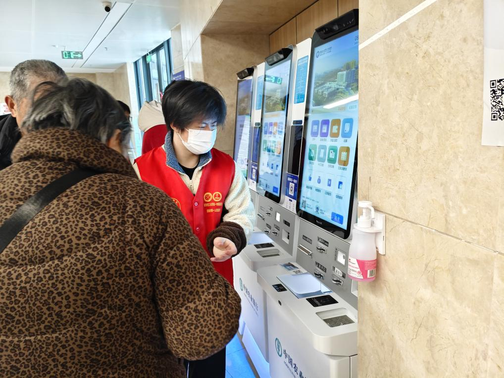 活动当天,志愿者们经医院工作人员岗前培训后,在自助服务区域为就医群众提供一对一协助,耐心指导老年群体及操作不便的患者完成办卡挂号、缴费、打印报告单等流程,同时解答就医咨询、引导就诊路线,用细致服务化解群众就医困扰,获得现场患者及家属的认可。