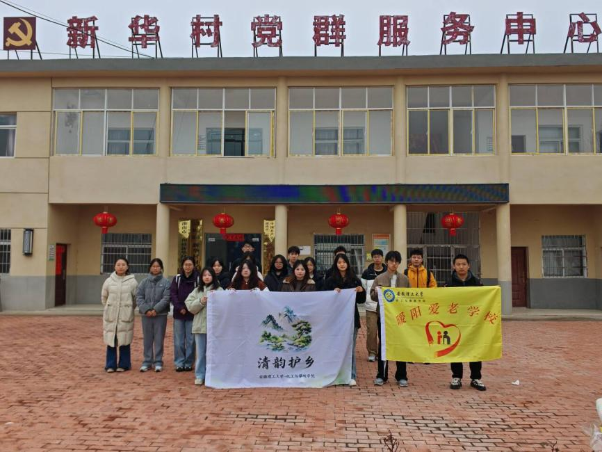 活动最后,全体志愿者在文化广场集合,活动负责人对本次服务进行总结,分享志愿服务心得,进一步深化志愿者对雷锋精神的理解。志愿者们手持 “清韵护乡”“暖阳爱老” 志愿旗帜合影留念,定格校村共建的温暖瞬间。