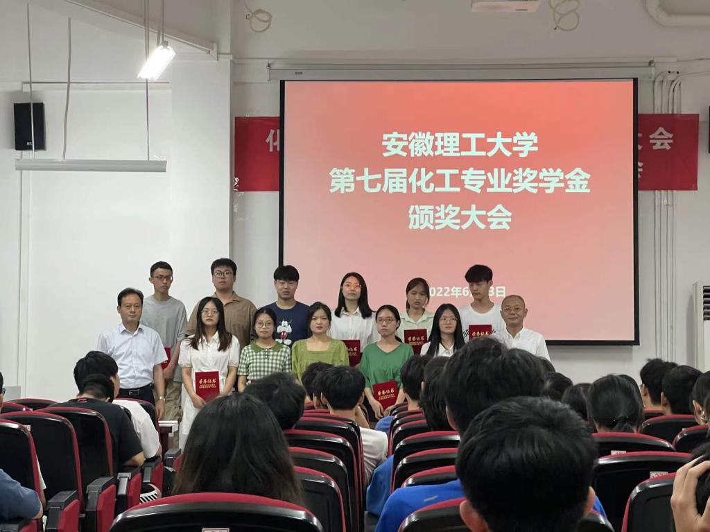 李中兵、邢宏龙共同为获奖同学颁奖,2018级化学工程与工艺、能源化学工程两个专业的11名同学获奖。